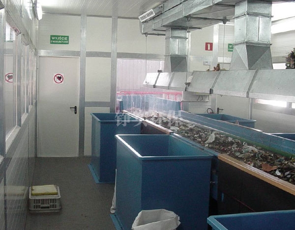 本产品除了有可适合分拣工人操作的分拣平台面外,还装有附带新风空调的彩钢房。这就大大提高了分选工人的工作环境质量。